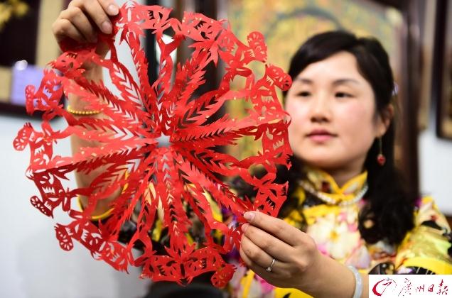 千件大師作品亮相廣州 2017年3月1日,第52屆全國工藝品交易會(huì)開幕式中國進(jìn)出口商品交易會(huì)展館舉行。圖為:佛山剪紙。廣報(bào)全媒體記者王燕 攝 曾衛(wèi)康文