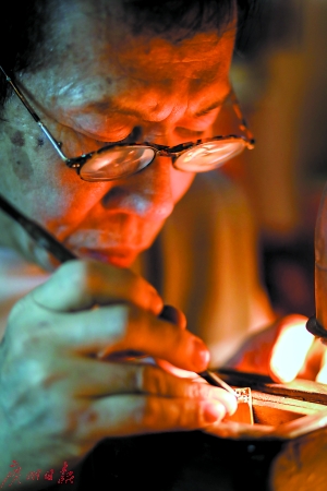 燙金絲印、公章膠印、原子印章……在和平西路9號有一家毫不起眼的刻章店——秋記刻章工藝,這里記錄著一段百年三代人的篆刻家族史。19世紀(jì)末期,叔公項信南隨著戲班來到廣州,成為一位金石篆刻名家;20世紀(jì)初,幼年喪父的項少南來到省城投奔叔叔項信南,也成為知名篆刻藝人,直到90歲高齡仍篆刻不輟;上世紀(jì)60年代,項少南之子項頌秋子承父業(yè),如今已入行57年。如今,隨著機(jī)器刻章的興起,從秋哥變成秋叔的71歲項頌秋卻面臨著手藝失傳?!叭绻幸懔Φ娜讼雽W(xué),我愿意免費教學(xué)。”他說。
