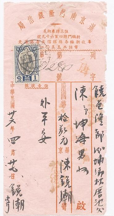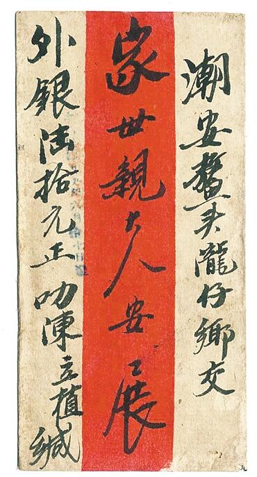 ▲紅條封,僑批封面紅白相間,正中為紅色。常見(jiàn)于清末、民國(guó)至新中國(guó)成立之后。