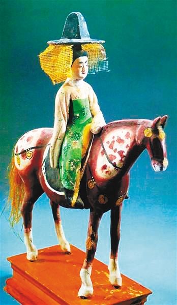 彩釉笠帽女騎馬俑