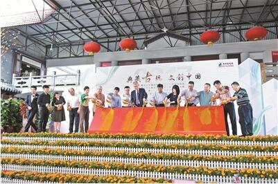 領(lǐng)導(dǎo)和嘉賓將金沙倒入啟動(dòng)儀式,一起為第33屆全國古玩珠寶藝術(shù)品交流會(huì)啟幕。