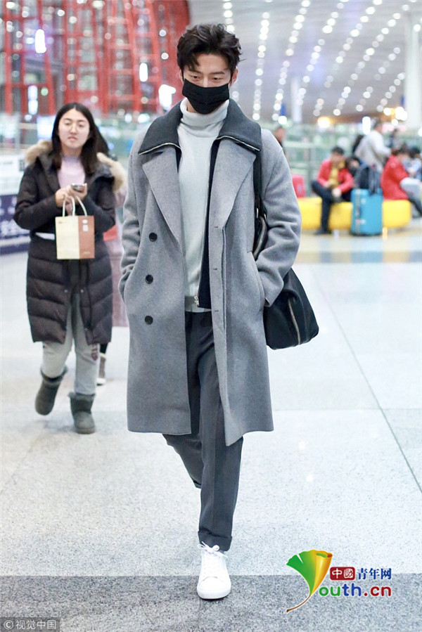??2017年12月13日,北京,竇驍身著灰色大衣、戴口罩現(xiàn)身機(jī)場(chǎng),為粉絲大方簽名,見(jiàn)鏡頭開(kāi)心比V揮手親和力滿分。