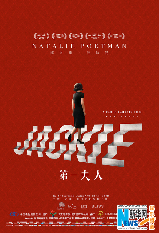 此次曝光的海報(bào)巧妙喻示了肯尼迪遇刺后總統(tǒng)夫人杰奎琳的人物心理狀態(tài)。海報(bào)中由娜塔莉·波特曼,在由自己名字組成的階梯上艱難攀登,一席黑色連身裙整潔樸素,在鮮紅色的背景中顯得孤獨(dú)神秘,同時(shí)也暗藏危機(jī),雖背影示人,但讀出了優(yōu)雅自信,似乎已放下內(nèi)心的秘密與束縛,坦然面對(duì)命運(yùn)帶來(lái)的一切。