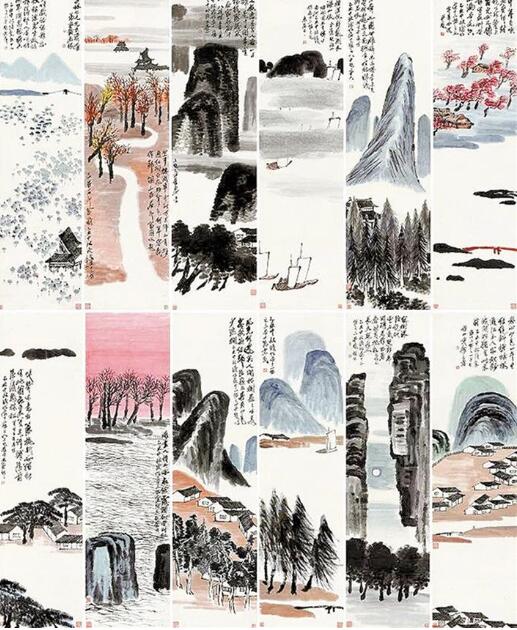 齊白石《山水十二條屏》創(chuàng)作于1925年,那一年齊白石62歲,正是他老年改變繪畫風(fēng)格的第四個(gè)年頭。他拋卻此前中國山水的程式,進(jìn)入“一洗凡塵萬事空”的真山真水創(chuàng)作境界,這件作品幾乎囊括了齊白石所有山水畫題材,而且每屏上均題有自作詩,鈐蓋齊白石常用印章,“詩書畫印”四絕俱全,堪稱其對山水創(chuàng)作升華后的集大成者?!?記者張 漫子)