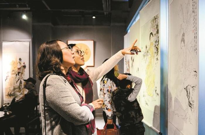 記者在現(xiàn)場(chǎng)看到,展覽精品匯萃不斷,內(nèi)容豐富,既有山水畫又有人物畫,也涵蓋了工筆、寫意、花鳥(niǎo)多種類型,集中呈現(xiàn)了戴培仁師生的藝術(shù)水平與藝術(shù)追求。