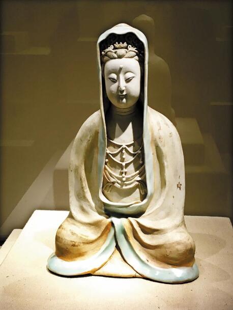▲南宋景德鎮(zhèn)白釉瓷塑觀音菩薩像。