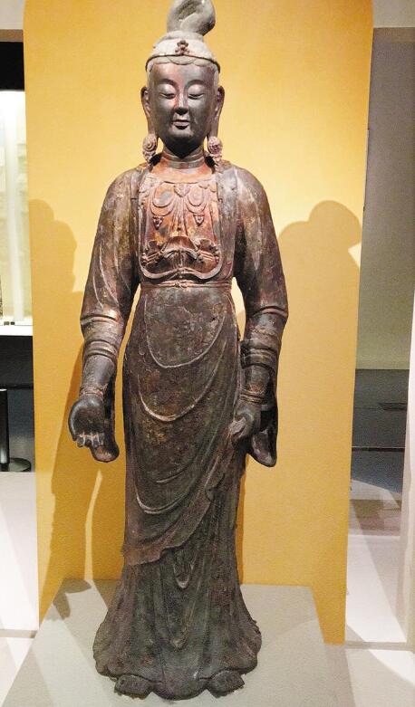 記者看到,如今正在舉行的“觀照自在——中國古代觀音造像藝術展”展出中國漢藏兩大佛教體系中觀音及其化身、本尊、眷屬等相關造像共計百余件,包括銅造像、繪畫、瓷塑以及木雕等多種質地,均為首都博物館所藏,藝術文化價值極高。由此亦可見首都博物館所藏佛教文物非常豐富。