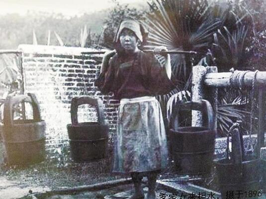 ▲客家女擔(dān)水老照片,攝于1894年。(資料圖片)
