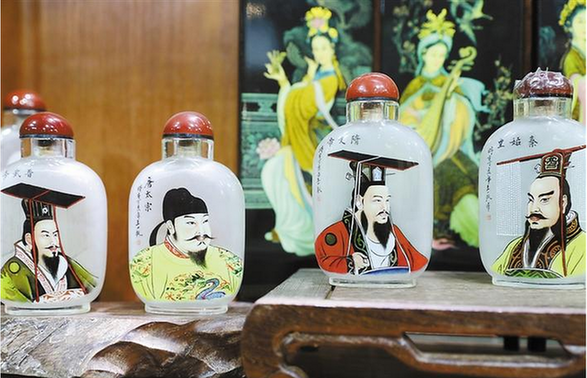 據(jù)楊藝介紹,明末清初,鼻煙作為貢品開始傳入我國,這些進(jìn)貢的鼻煙用玻璃瓶盛裝,以防止其味道散失,并以瓶的大小標(biāo)示鼻煙計(jì)量。王士禎在《晉祖筆記》中記載:“鼻煙以玻璃為瓶貯之。瓶之形象種種不一,顏色具紅黃紫白黑綠諸色,白如水晶,紅如火齊,極可愛玩,以象齒為匙,就象鼻之,遠(yuǎn)納于瓶?!彼耐怀鲐暙I(xiàn)就在于,把紙上畫和寫的藝術(shù),經(jīng)過工具、操作等多方面的革新,改在為玻璃或水晶煙壺內(nèi)壁反面上作畫,其難、其奇,真可謂巧奪天工。內(nèi)畫煙壺的創(chuàng)作在光緒年間達(dá)到鼎盛。收藏界認(rèn)為它集中國工藝美術(shù)之大成的袖珍藝術(shù),是詩書畫并茂的藝術(shù)精品。