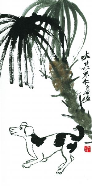 隨著上世紀(jì)九十年代國(guó)內(nèi)寵物熱的興起,狗越來越多地進(jìn)入大眾的日常生活,頻頻成為當(dāng)代畫家的表現(xiàn)對(duì)象。當(dāng)代大家黃永玉先生的水墨畫,具有諷刺與幽默的色彩,他畫的狗系列畫作,令人忍俊不禁。著名畫家史國(guó)良的西藏風(fēng)情畫中,我們也經(jīng)常能看到狗的身影,如他畫的《八角街上》,畫中靜臥一角的黑狗使整個(gè)畫面平添了許多生活氣息。古今畫狗的名家名作還有很多,實(shí)難一一列舉。狗的忠誠(chéng)、溫順是人類的最愛,正緣于狗與人類的這種特殊關(guān)系,狗才成為畫家們百畫不厭的題材。