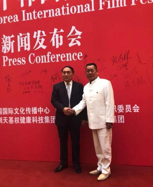 天基權(quán)董事長/總裁釋延豹與中韓國際電影節(jié)執(zhí)行委員長兼評(píng)審委員長張國立合影