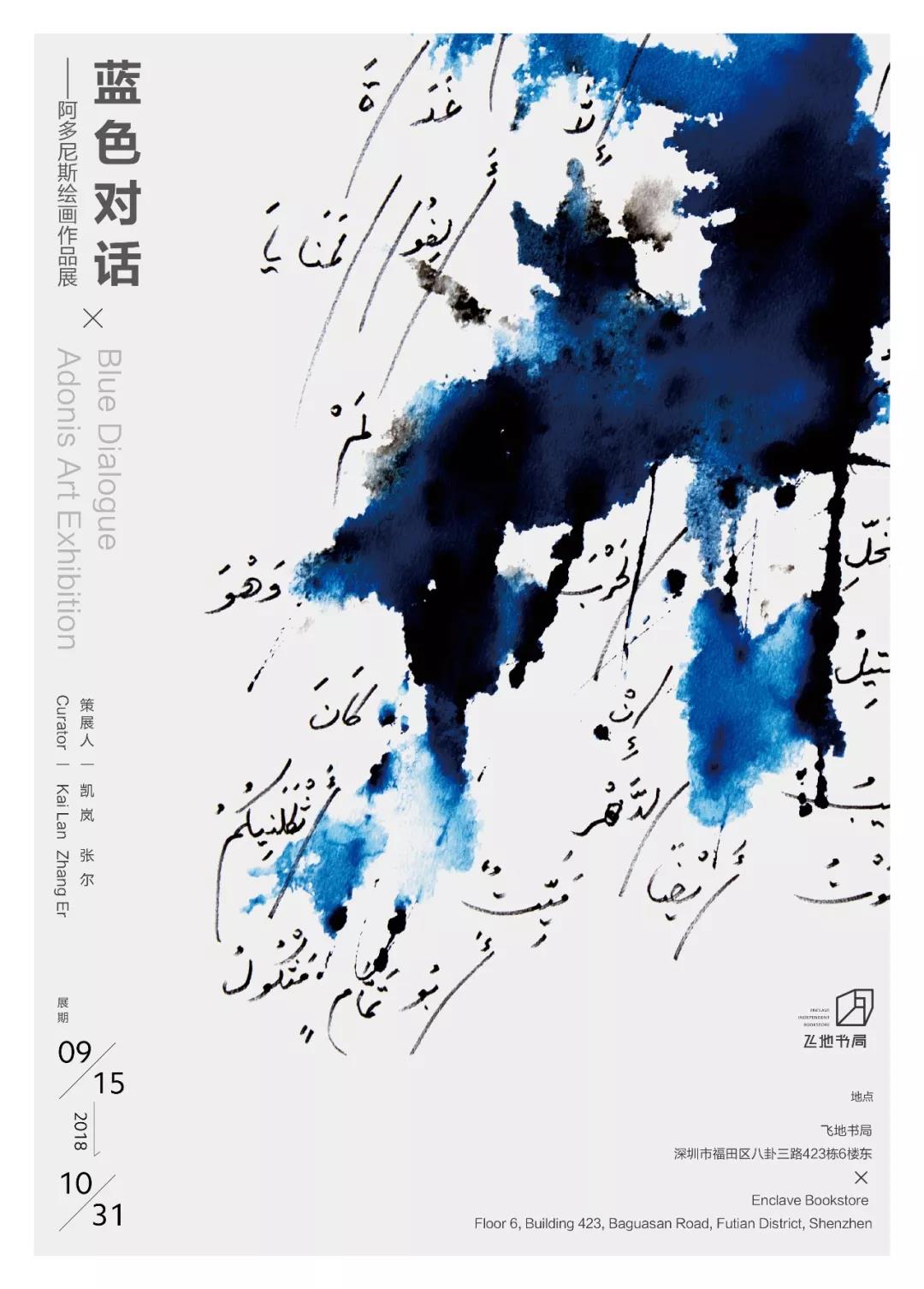 飛地書局將于9月15日至10月31日展出“藍色對話——阿多尼斯繪畫作品展”。展覽由凱嵐與張爾策劃,呈現(xiàn)詩人阿多尼斯五個系列的繪畫。