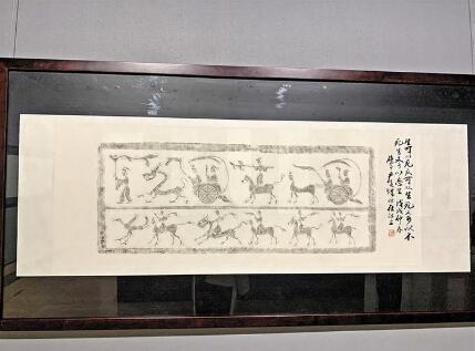整個(gè)展覽分為“集印為詩”“詩意丹青”“我拓我家”三個(gè)主題板塊。以書法、拓片、山水畫等形式,豐富立體地展示了侯家三人多年來的藝術(shù)創(chuàng)作歷程。其中,“集印為詩”主要展現(xiàn)了侯軍多年來用收集的印章印文組合創(chuàng)作而成的一首首詩詞,以及諸位書家創(chuàng)作的詩書畫印作品?!拔彝匚壹摇眲t主要呈現(xiàn)了侯軍夫人李瑾平日以家為主題創(chuàng)作的傳拓作品,其中大部分皆由各地著名書畫家題跋或配畫,形式新穎,雅俗共賞。據(jù)了解,李瑾鐘情于傳統(tǒng)書畫,喜愛戲曲及民間剪紙,尤其喜歡傳拓藝術(shù)。在“詩意丹青”主題中,則集中展示了侯軍女兒侯悅斯所創(chuàng)作的優(yōu)美詩詞,并由畫家田耘、書法家朱德玲等以詩詞為題,創(chuàng)作書畫作品,構(gòu)成詩書畫印相交融的藝術(shù)呈現(xiàn)。