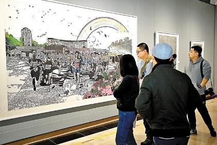 首屆“閃亮龍華”美術(shù)書法攝影展吸引眾多文學(xué)藝術(shù)愛好者前往參觀。