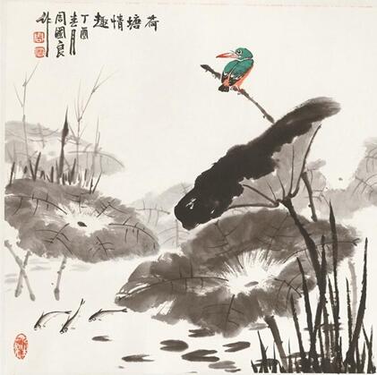 周國良,生于1945年,是周懷民之幼子。他自幼在父親的指導(dǎo)教育下從事書法繪畫學(xué)習(xí),特有的條件和環(huán)境使他有更多機會觀賞臨摹歷代名作真跡,奠定了扎實的藝術(shù)功底。上世紀70年代初,他師承上海著名畫家吳青霞研習(xí)鯉魚、花鳥,擅長山水、花鳥,尤以鯉魚著稱。從藝四十余載,周國良勤奮耕耘,堅持寫生,足跡遍及祖國大江南北、名山大川,在繪畫中既能保持中國畫傳統(tǒng)技法,又有新的創(chuàng)意,形成獨特風(fēng)格。
