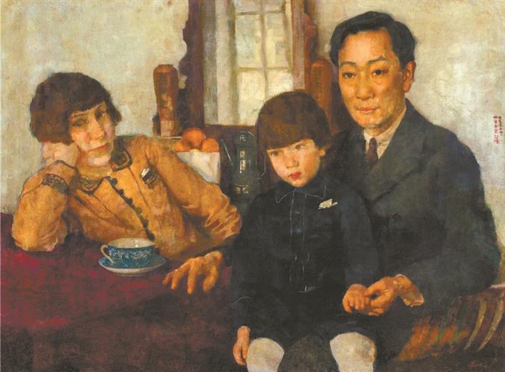 《楊仲子全家?!芬彩俏χ鳎猿领o之態(tài)吸引觀眾駐足,忍不住與畫中人對視。這是徐悲鴻的佳作,畫的是好友楊仲子一家。楊仲子是中國最早留學(xué)歐洲研習(xí)西方音樂的先驅(qū),回國后傳授西方音樂,創(chuàng)建并推進(jìn)中國音樂教育教學(xué)體制,倡導(dǎo)改進(jìn)并推動民族音樂發(fā)展。這件創(chuàng)作于1928年冬天的作品,徐悲鴻畫出了楊仲子和妻子、孩子閑適的狀態(tài)。畫中三人神態(tài)各異,在藝術(shù)家的傳情畫筆下,觀眾似能看到他們恬淡表情之后的情緒。