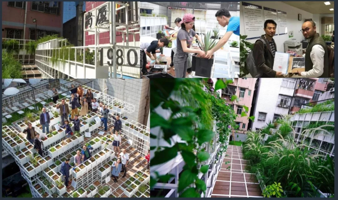 來自本地智慧的聯(lián)合創(chuàng)始人謝克非先生介紹說,作為城中村改造的實踐者,我們在做就是如何在這些矛盾中獲得共生。或者說,如何把所有矛盾點結合起來,讓城中村可以可持續(xù)地發(fā)展。所以在2018年3月聯(lián)合大自然保護協(xié)會(TNC)、桃花源生態(tài)保護基金會、深圳市城市規(guī)劃設計研究院、聯(lián)合公設發(fā)布了綠色天臺:愚公計劃2.0——崗廈1980海綿城市綠色屋頂示范項目。這個綠植天臺不僅是能夠美化環(huán)境,截存雨水、循環(huán)灌溉綠植等,更重要的是我們希望它作為一個平臺,把NGO的理念注入城中村,讓大家把對城中村的注意力從貧富懸殊、拆遷轉移到綠色環(huán)保,促進可持續(xù)的發(fā)展。這里不僅是個景觀的平臺,更是內(nèi)容發(fā)動機,能夠持續(xù)地產(chǎn)生更多的內(nèi)容。通過藝術、教育、公益等不同板塊的活動,以內(nèi)容的方式,把文化、環(huán)保、可持續(xù)發(fā)展等的信號不斷在這個點上發(fā)散出去,讓大家重新認識城中村,從持續(xù)性的內(nèi)容信息實現(xiàn)社區(qū)營造,服務不同階層的人,讓更多人覺得環(huán)保、教育這件事情其實是非常有趣的,不生硬的,大家會主動繼續(xù)攜手服務社區(qū)。