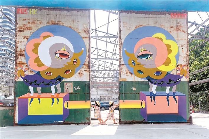在城市公共空間中,涂鴉藝術(shù)不僅是一種重要的人文景觀,同時(shí)還能給人一種視覺享受,使單一的生活變得富有色彩。來自中國香港的全職藝術(shù)家彭怡擅長用涂鴉進(jìn)行故事創(chuàng)作,作品《雙觀》以左右對稱相望的停車場守護(hù)神的形象感染車主與行人,傳達(dá)平穩(wěn)冷靜的力量。同樣來自中國香港的涂鴉藝術(shù)家曾昭昶,利用文字涂鴉作品的視覺誤差,嘗試突破停車格的物理范圍,將平面轉(zhuǎn)為立體,帶來作品《內(nèi)&外》。