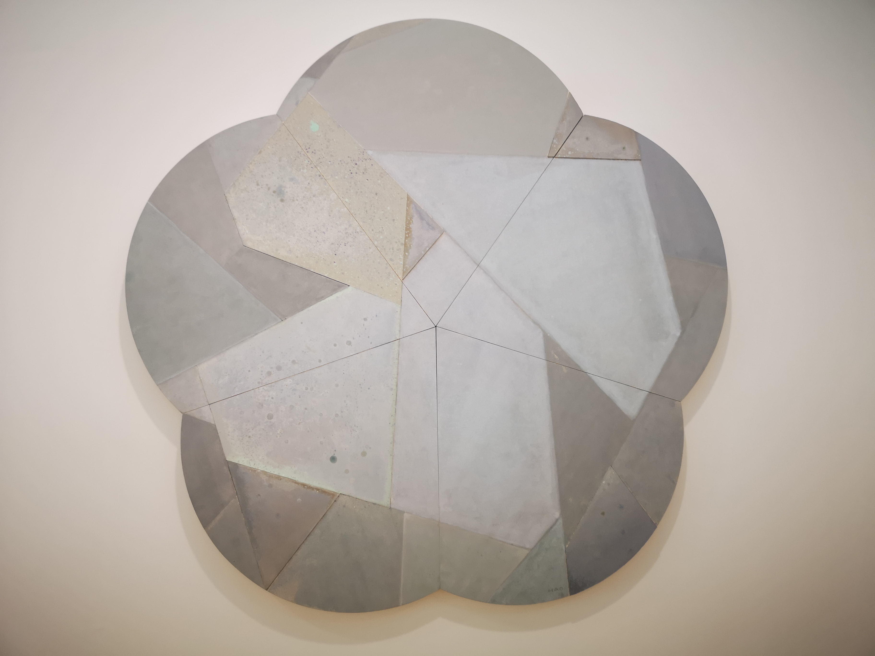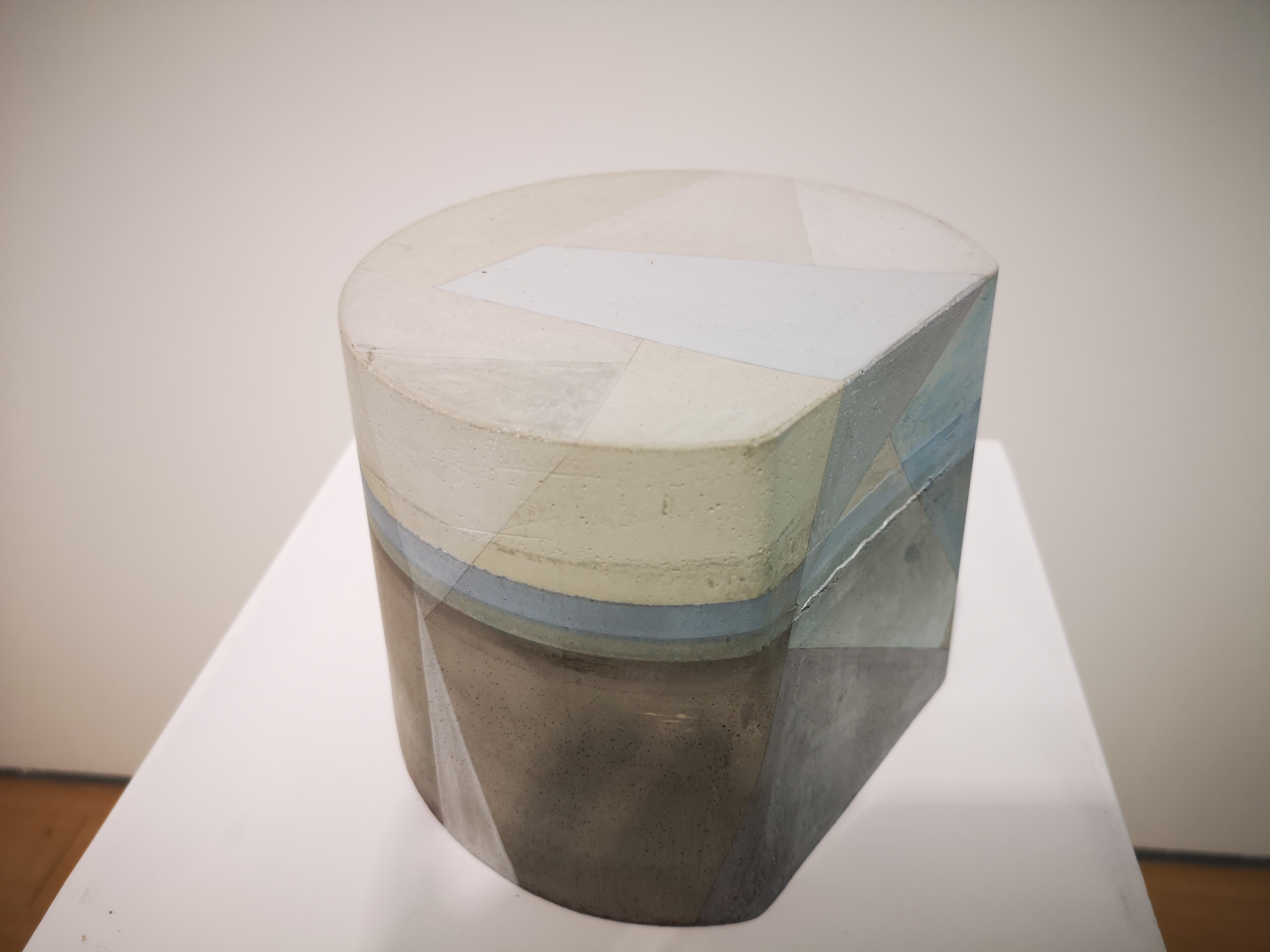 自2013年王豪開始以水泥作為個人創(chuàng)作媒介以來,三個系列“寂”、“樸”、“遠”并行展開?!凹拧焙汀皹恪睆娬{(diào)水泥作品的靜態(tài)特征,不論是單件作品還是多件組合作品,在水泥材料的細微變化與色塊搭配上,力求傳達出一種寧靜、樸拙的整體氣息;“樸”系列在形式上更為豐富,不僅嘗試使用斜線、三角形乃至圓形,還探索富于中國古典韻味的形式表達;“遠”系列的名稱則來源于中國傳統(tǒng)山水繪畫所特有的透視技法“三遠”概念,這系列作品意圖通過畫面的動態(tài)表現(xiàn)打破二維空間限定,拓展平面繪畫的深度與廣度,從美學(xué)意境上與高遠、深遠、平遠相融合。