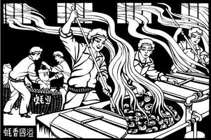 饒凱玉從來沒學過國畫,也沒接受過正規(guī)的美術教學。在集訓一個月期間,老師給她一本書,建議她向國畫發(fā)展。她發(fā)現(xiàn)書里有幾幅小剪紙圖很有趣,突然勾起她的創(chuàng)作靈感,為什么不畫農村題材呢?她決定創(chuàng)作農村“四員”(出納、會計、保管、記工員),“四員”是當時典型的社會人物?!拔也灰媷?,要刻紙成畫?!别垊P玉說。當時,她先用毛筆在紙上勾勒出形象,修改定稿,后用印寫紙反轉復印在刻紙上,再用刀刻紙成畫。
