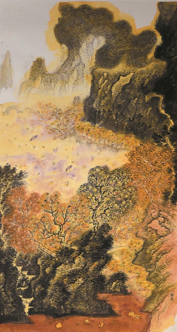 作為80后畫家,韓昊研究光在中國繪畫中獨特的審美價值和精神內(nèi)涵,同時也有意識地將光元素運用在自己的山水畫創(chuàng)作中,在前人的基礎(chǔ)上融入了當代意識,以表達自然的真實感和意境的抒情性、直觀性,給人既夢幻空靈又清新詩意的視覺效果,大有“以追光躡影之筆,畫通天盡人之懷”的境界。