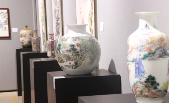 展出廣彩大師劉群興之子劉致遠(yuǎn)國畫作品20幅及陶瓷精品60件。展期將持續(xù)到1月15日。