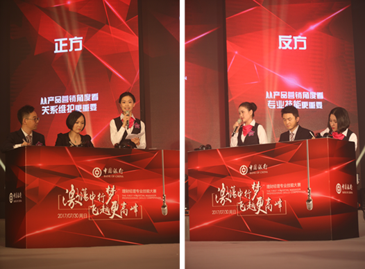 在辯論環(huán)節(jié),選手們采取3:3對抗辯論形式,圍繞著 “美元加息,現(xiàn)階段配置美元資產是否合理?”、“在服務客戶時,關系維護和專業(yè)技能,哪個更重要?”兩大辯題進行辯論,現(xiàn)場金句頻現(xiàn),精彩紛呈。此環(huán)節(jié)設計,不僅考驗理財經理們的個人專業(yè)技能水平,還考驗團隊臨場發(fā)揮能力。