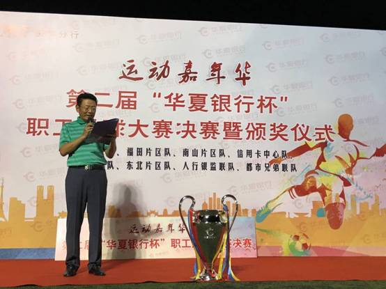 深圳新聞網(wǎng)訊 8月13日,由華夏銀行深圳分行工會(huì)、團(tuán)委聯(lián)合舉辦的“運(yùn)動(dòng)嘉年華”之第二屆“華夏銀行杯”職工足球大賽在香蜜湖大榮足球場(chǎng)圓滿收官。此次賽事歷時(shí)1個(gè)多月,華夏銀行各區(qū)域的6支隊(duì)伍與廣電集團(tuán)都市頻道兄弟聯(lián)隊(duì)、人行銀監(jiān)聯(lián)隊(duì)參加了累計(jì)20場(chǎng)比賽。經(jīng)過(guò)激烈角逐,華夏銀行信用卡中心隊(duì)奪得冠軍,都市頻道兄弟聯(lián)隊(duì)獲得亞軍,東北片區(qū)聯(lián)隊(duì)獲得季軍;來(lái)自信用卡中心隊(duì)的韋遠(yuǎn)庭獲得最有價(jià)值球員獎(jiǎng);東北片區(qū)聯(lián)隊(duì)的楊帆、李健輝分別獲得最佳射手獎(jiǎng)、最佳門(mén)將獎(jiǎng)。
