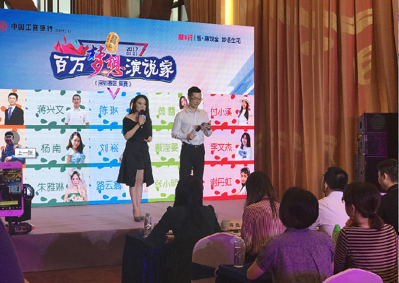 作為工行融e行(手機銀行)品牌營銷活動,“百萬夢想演說家”可謂是聲勢浩大?;顒影l(fā)動了工行所有員工進行海選。此次復賽則在全國八大賽區(qū)分別進行,其中華南地區(qū)采取線下復賽方式,從廣東(不含深圳)、廣西、海南、廈門、深圳五大分區(qū)甄選了15位夢想達人在深圳賽區(qū)進行同臺PK。