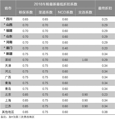 四川地區(qū)自主核保系數(shù)和自主渠道系數(shù)調(diào)整為0.65至1.15;山西、福建、山東、河南、廈門(mén)等地,自主核保系數(shù)和自主渠道系數(shù)調(diào)整范圍均為0.7至1.15;新疆地區(qū)自主核保系數(shù)和自主渠道系數(shù)調(diào)整范圍均為0.75至1.15。