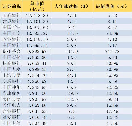 據(jù)匯大數(shù)據(jù)終端統(tǒng)計,截止到今年3月20日,中國平安的市值為1.35萬億,僅次于工商銀行、建設(shè)銀行和中國石油。在市值排名前20名的公司中,去年全年股價漲幅在100%以上的公司僅有4家,分別是??低暋①F州茅臺、美的集團和中國平安,漲幅分別為149.5%,111.9%、102.5%和101.5%。