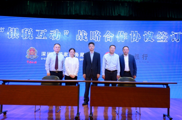 2018年3月28日下午,深圳市國(guó)稅局(簡(jiǎn)稱“深圳國(guó)稅”)在深圳國(guó)稅大樓五樓舉行“銀稅互動(dòng)”合作簽約暨“金融超市”項(xiàng)目啟動(dòng)儀式,招商銀行深圳分行作為首批合作金融機(jī)構(gòu)在現(xiàn)場(chǎng)與深圳國(guó)稅簽署了“銀稅互動(dòng)”戰(zhàn)略合作協(xié)議。