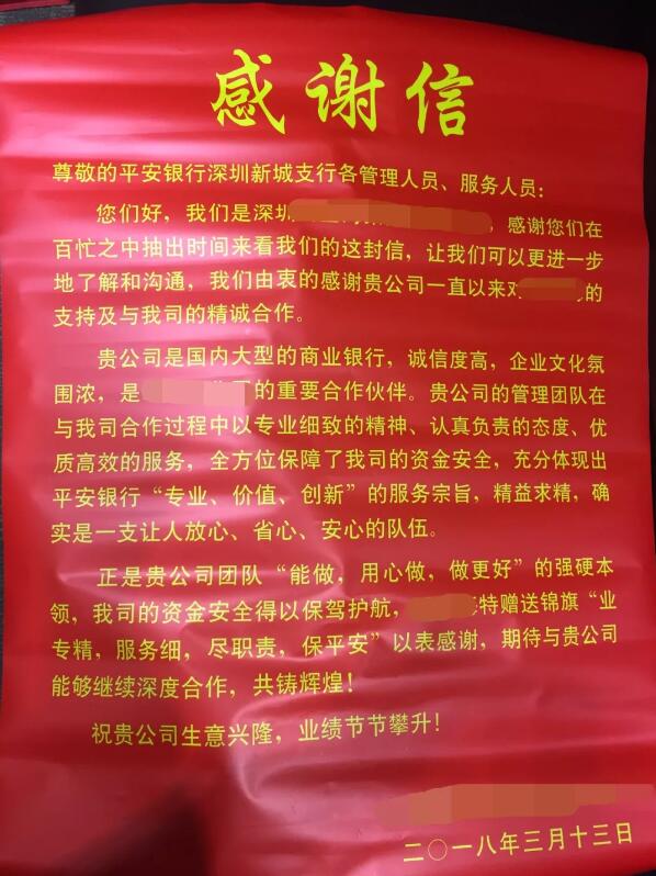 深圳新聞網(wǎng)訊 日前,平安銀行深圳分行分支行聯(lián)動(dòng)想方設(shè)法勸阻客戶(hù),成功堵截了一起詐騙,幫助客戶(hù)避免了500多萬(wàn)元的資金損失,并協(xié)助警方抓獲了詐騙犯罪嫌疑人。此次成功堵截詐騙,得到了客戶(hù)和家屬的高度贊揚(yáng),專(zhuān)程送來(lái)了錦旗和感謝信,稱(chēng)贊平安銀行“業(yè)專(zhuān)精、服務(wù)細(xì)、 盡職責(zé)、保平安”。