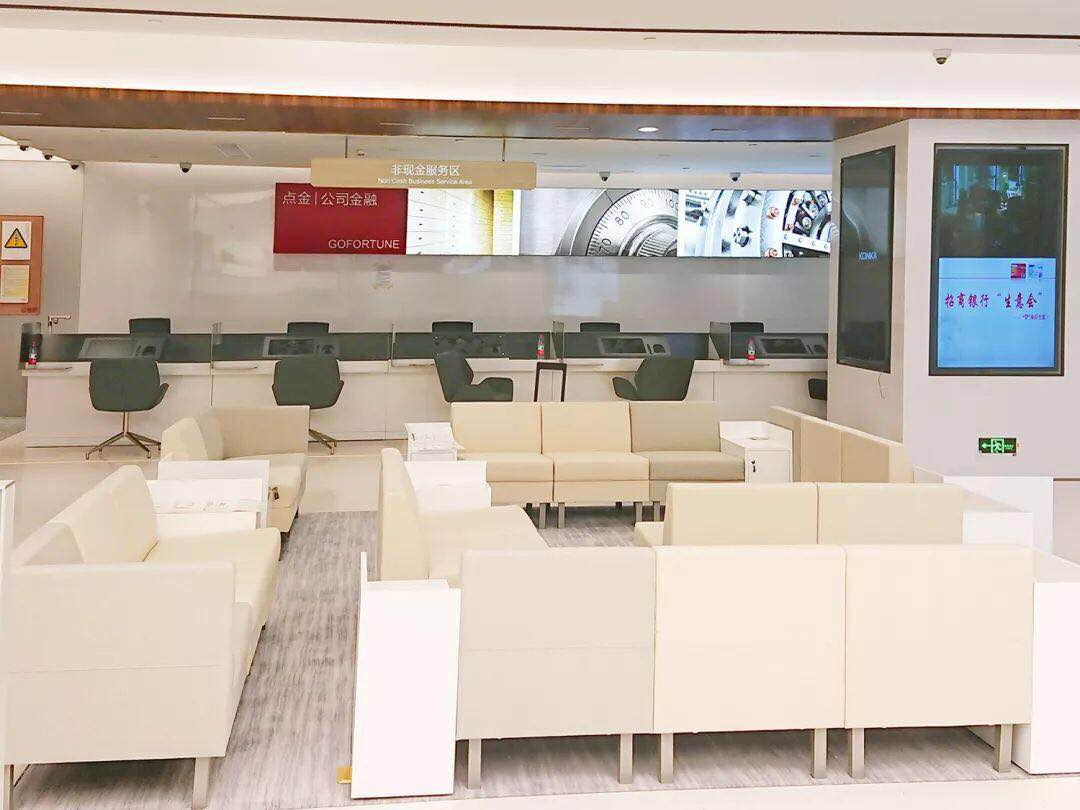 招商銀行3.0網(wǎng)點(diǎn)圍繞“科技+生活”的理念建設(shè)。走近網(wǎng)點(diǎn),門(mén)楣設(shè)計(jì)運(yùn)用點(diǎn)陣創(chuàng)意,寓意著招行擁抱金融科技的理念。