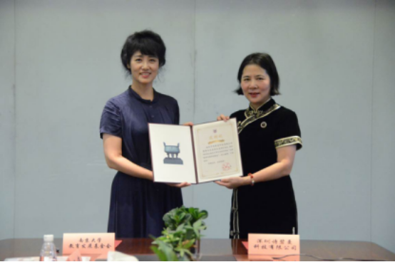 南京大學(xué)發(fā)展委員會主任張曉東向詩碧曼集團(tuán)董事長朱建霞頒發(fā)感謝狀