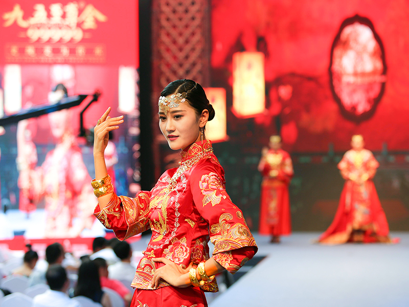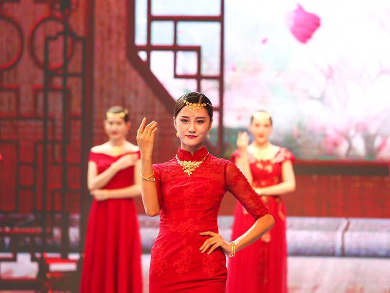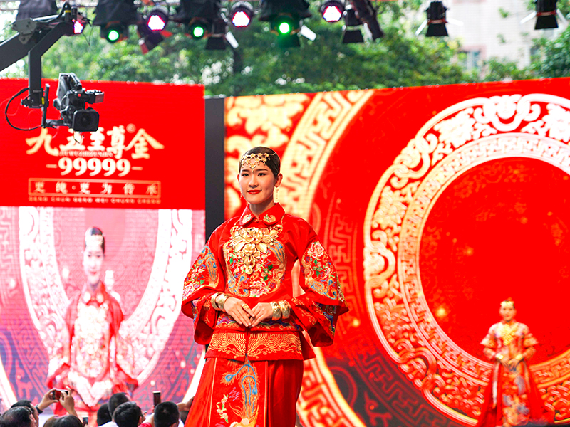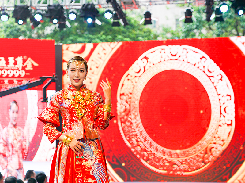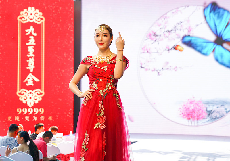 黃金文化與中國傳統(tǒng)婚慶文化淵源久遠,從古自今,黃金有情比金堅之意,有滿滿的喜慶之感,在嫁娶之時通常作為聘禮中的重頭戲。結婚三金通常指的是項鏈、手鐲、戒指,寓意夫妻情比金堅,一生一世永相隨之意,因此這美好的寄愿習俗一直被傳承至今。黃金又是財富、身份的象征,結婚佩戴黃金首飾,彰顯家族的財富、地位與榮譽,飽含家族人濃郁的情感與欣喜,可代代傳承!九五至尊金至囍新娘演繹的中華黃金婚慶文化,唯美唯俏,牽動著每個人的心,掀起了中華黃金婚慶文化的熱潮。