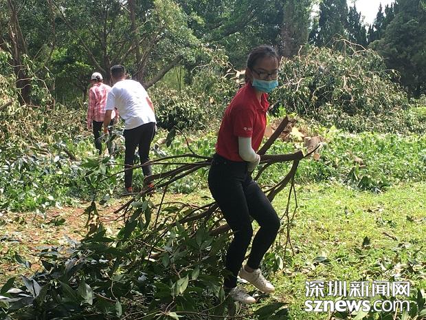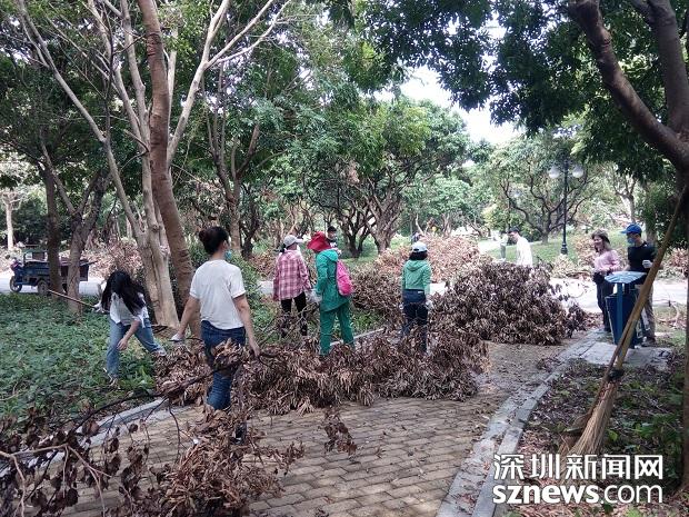 9月22日,臺風(fēng)過后小長假的第一天,深圳農(nóng)村商業(yè)銀行積極響應(yīng)深圳市城管局和人大代表“人人行動,一起清潔美麗家園”的倡議,在全行發(fā)起了“愛心清理中心公園,還深圳一片干凈祥和”的志愿活動,全行70多名員工和家屬自發(fā)組成義工隊(duì),利用中秋小假期來到深圳市中心公園,積極參與搬運(yùn)殘枝斷木,清潔落葉垃圾的活動。在清理公園路障過程中,深圳農(nóng)商行員工分工明確,男士負(fù)責(zé)倒塌樹枝、樹樁的疏通與清理,女士則主要負(fù)責(zé)零散枝丫、落葉的清掃。而當(dāng)清理至公園受災(zāi)最嚴(yán)重區(qū)域時(shí),深圳農(nóng)商行義工隊(duì)成員齊上陣,兩手并用,或是用力拖拽巨大的倒塌樹枝,或是通力協(xié)作抬抱沉重的實(shí)木樁,來來回回不斷將攔路樹枝收拾整齊歸攏到路邊,以方便公園管理處人員后續(xù)處理。此次清理工作持續(xù)了約3小時(shí),基本恢復(fù)了公園中心區(qū)綠道的通暢與整潔。路過的行人得知他們是義務(wù)進(jìn)行清理時(shí),無不駐足稱贊,而參與此次活動的所有深圳農(nóng)商行人也同樣為自己感到驕傲。