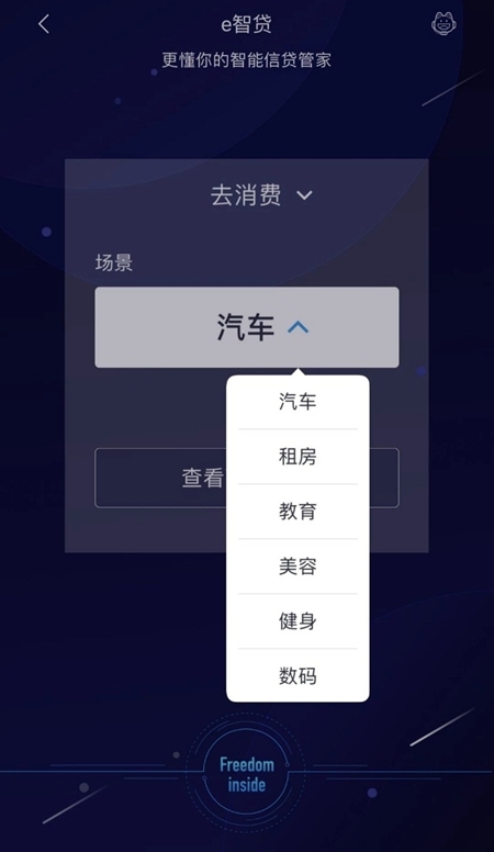在客戶點(diǎn)擊e智貸后,F(xiàn)reedom還會(huì)根據(jù)客戶需求通過(guò)點(diǎn)擊「去消費(fèi)」就能推薦汽車、租房、教育、美容、健身、數(shù)碼等服務(wù),助力客戶開啟品質(zhì)生活。