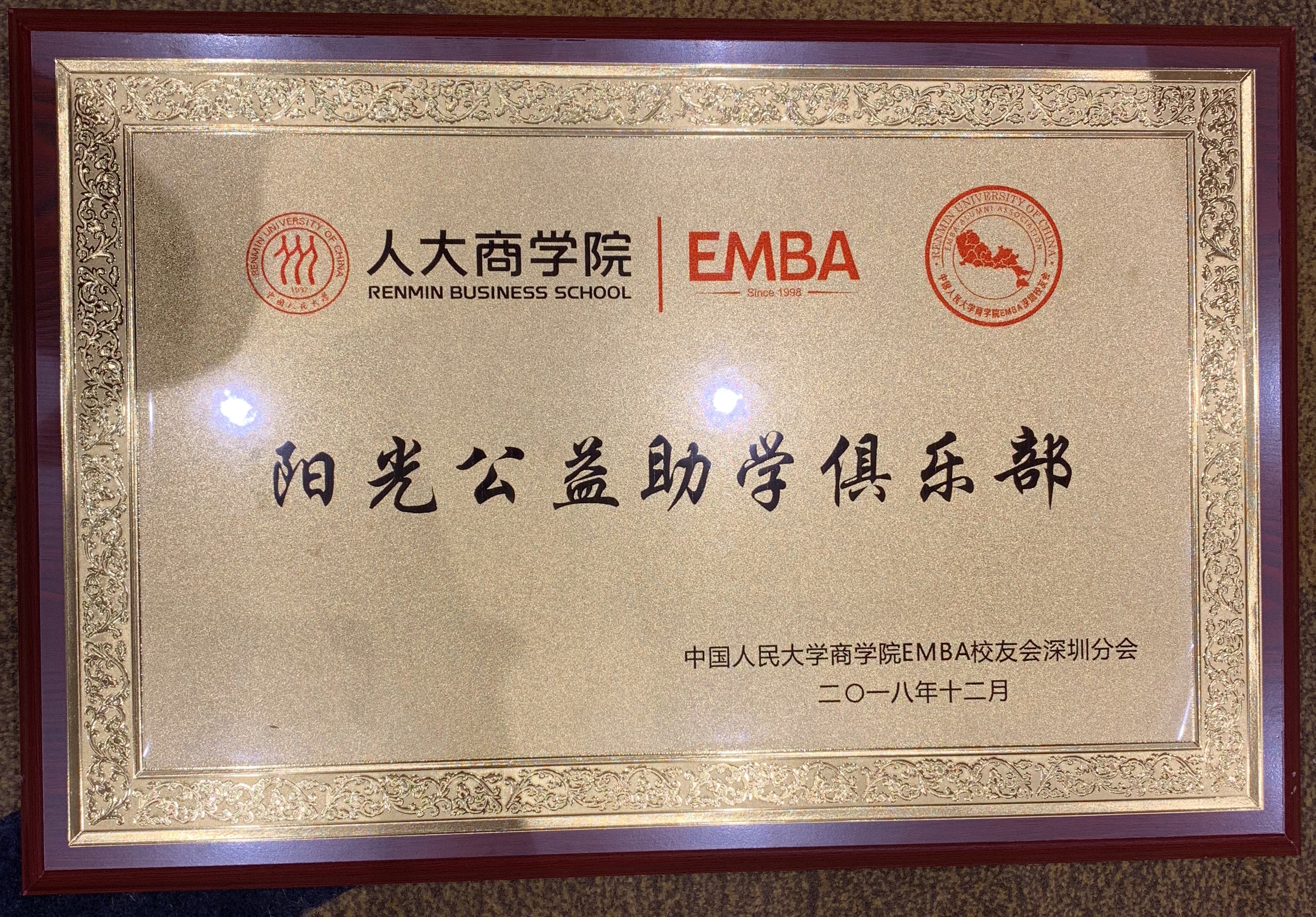 深圳新聞網(wǎng)訊 2018年12月15日,在深圳舉行的中國人民大學EMBA深圳校友會迎新會上,中國人民大學EMBA“陽光公益助學俱樂部”終于等來了出生證——秘書長樓蓉代表公益助學俱樂部接受中國人民大學商學院毛基業(yè)院長的授牌,這標志著人大EMBA校友會深圳分會陳登志會長帶領籌備數(shù)月的“陽光公益助學俱樂部”,在人大商學院、校友會的大力支持下正式成立。中國人民大學商學院院長助理、EMBA中心主任鄒宇峰博士、中國人民大學EMBA校友會會長馬少福等領導到場見證。
