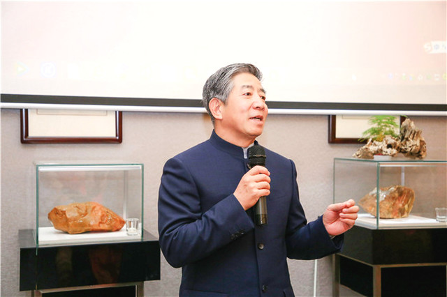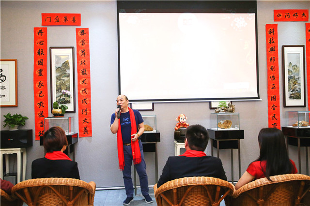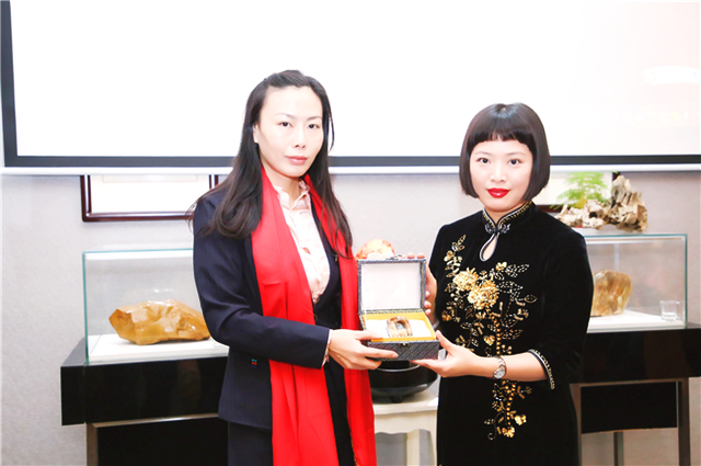 自古書法印章不分家,作品必須蓋印才算完整。本次活動場地提供田黃博物館、希雍天石董事長繆建生為到場嘉賓和校友,受邀分享田黃石科普知識,介紹歷經(jīng)1.8億萬年形成的田黃石種類及特點。 歡聚活動上,田黃博物館特別挑選了一枚“溫、潤、細、膩、凝、潔” 、印面方正碩大,雙龍雕刻立體,栩栩如生的昌化田黃貫斗雙龍印璽,捐贈給文學(xué)社。 收到如此珍貴的禮物,求是文學(xué)社秘書長樓蓉表示:非常感謝田黃博物館的支持與厚禮,后期將委托機構(gòu)對這塊印石義拍或義賣,所得將以求是文學(xué)社和田黃博物館名義,捐贈給公益項目,會讓這一珍貴的禮物,發(fā)揮更多的社會價值。