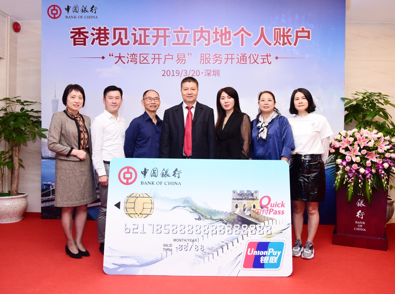 為積極響應(yīng)《粵港澳大灣區(qū)發(fā)展規(guī)劃綱要》要求,深化推進(jìn)粵港澳大灣區(qū)金融基礎(chǔ)設(shè)施建設(shè),在中國人民銀行深圳市中心支行的大力支持和推動(dòng)下,中國銀行深圳市分行于2019年3月20日在羅湖口岸人民南路支行舉辦“香港代理見證開立內(nèi)地個(gè)人銀行結(jié)算賬戶”服務(wù)開通儀式,先行推出“大灣區(qū)開戶易”服務(wù),并成功辦理深港首筆代理見證開戶業(yè)務(wù)。