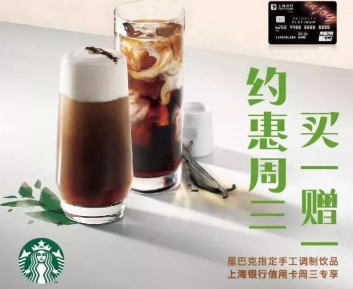 活動內容:每周三持上海銀行信用卡實體卡片至深圳地區(qū)指定合作門店,資格驗證通過后刷卡即享指定手工調制飲品買一贈一。