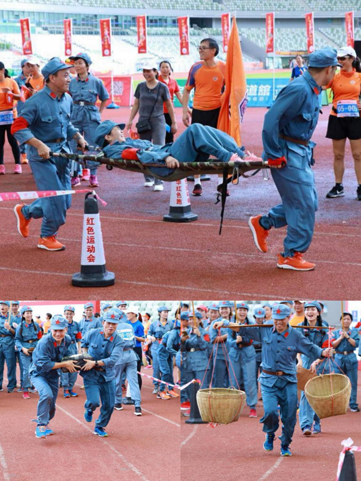 紅色運(yùn)動(dòng)會(huì)結(jié)合長(zhǎng)征路途上的艱苦環(huán)境與革命先輩的英勇事跡設(shè)計(jì)了7種不同類型的團(tuán)隊(duì)比賽項(xiàng)目,如穿越烽火線、火線救傷員、朱總司令的扁擔(dān)南泥灣大豐收等。讓運(yùn)動(dòng)員們?cè)诒荣惖倪^(guò)程中,著革命前輩的戰(zhàn)衣,回到戰(zhàn)火紛飛的艱苦年代,一路奮勇拼搏征程,邁向新時(shí)代。