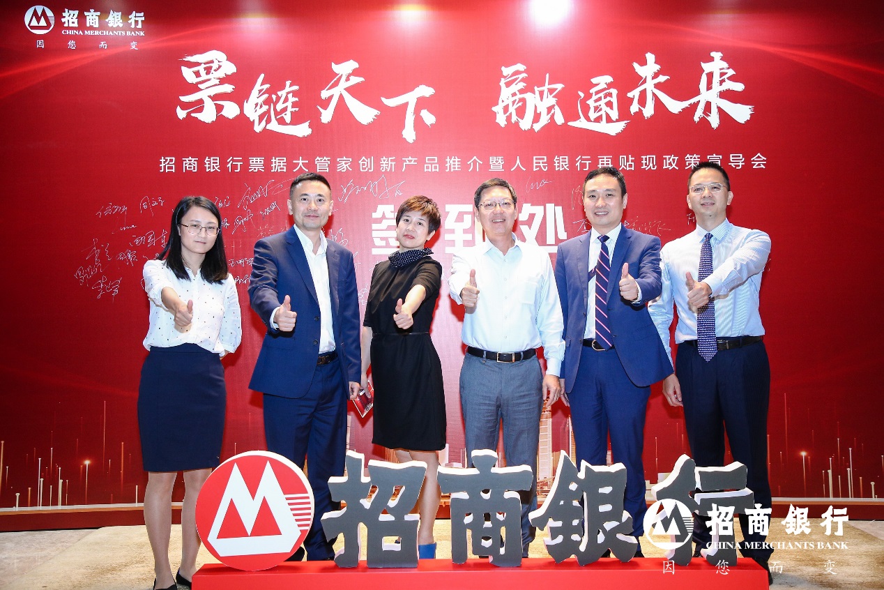 2019年11月15日,招商銀行攜手中國(guó)人民銀行深圳市中心支行在深圳成功舉辦“2019招商銀行票據(jù)大管家創(chuàng)新產(chǎn)品推介會(huì)暨人民銀行再貼現(xiàn)政策宣導(dǎo)會(huì)”。本次推介會(huì)以“票鏈天下?融通未來(lái)”為主題,來(lái)自華為、TCL、富士康、中興通訊、創(chuàng)維、深圳水務(wù)等100余家企業(yè)代表出席,共同探討票交所時(shí)代下票據(jù)管理、融資以及創(chuàng)新產(chǎn)品實(shí)踐。中國(guó)人民銀行深圳市中心支行貨幣信貸管理處出席推介會(huì),隆重介紹即將推出的人民銀行普惠金融貼現(xiàn)政策——“商票通”。招商銀行總行票據(jù)業(yè)務(wù)部黃斌總經(jīng)理、招商銀行總行研究院譚海鳴副院長(zhǎng)、招商銀行深圳分行曾令武行長(zhǎng)助理及招商銀行深圳分行票據(jù)業(yè)務(wù)部張衍松總經(jīng)理共同參與了此次活動(dòng)。