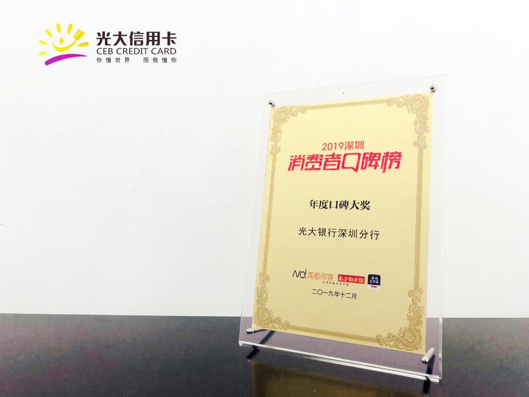 近年來光大銀行深圳分行積極開拓貼近民生的消費(fèi)場景,努力踐行“市場即獲客,獲客即市場”理念,加強(qiáng)場景建設(shè),提升客戶活躍度及品牌影響力,最終從百家機(jī)構(gòu)角逐中脫引而出,榮獲“2019年度消費(fèi)者口碑獎”,成為致敬改革開放40周年經(jīng)典品牌。