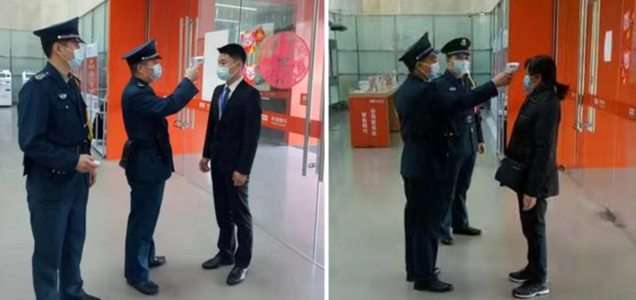 網(wǎng)點(diǎn)服務(wù)人員對(duì)進(jìn)入營(yíng)業(yè)網(wǎng)點(diǎn)的人員做好體溫測(cè)量,對(duì)于上門辦理業(yè)務(wù)的客戶,引導(dǎo)客戶佩戴口罩,鼓勵(lì)客戶使用自助機(jī)具或線上金融服務(wù),每日定時(shí)對(duì)填單臺(tái)、簽字筆等客戶頻繁接觸部位進(jìn)行消毒,保障客戶身體健康。