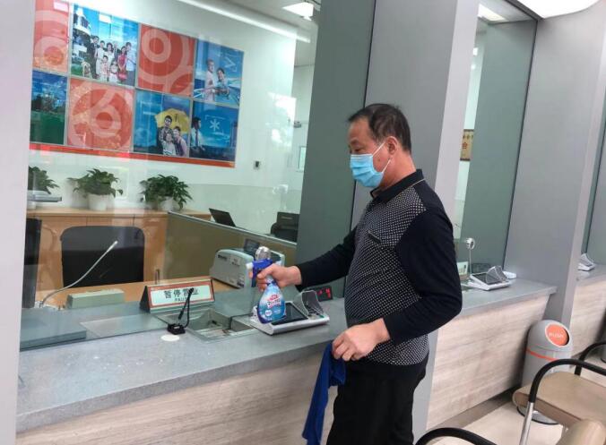 每天正式營業(yè)前,網(wǎng)點(diǎn)對營業(yè)大廳、自助設(shè)備、柜臺(tái)等進(jìn)行360°全面無死角消毒。營業(yè)期間,每天確保廳堂環(huán)境每兩小時(shí)、自助機(jī)具每小時(shí)的頻率做好消毒工作,營造安全的業(yè)務(wù)辦理環(huán)境供客戶安心辦理。