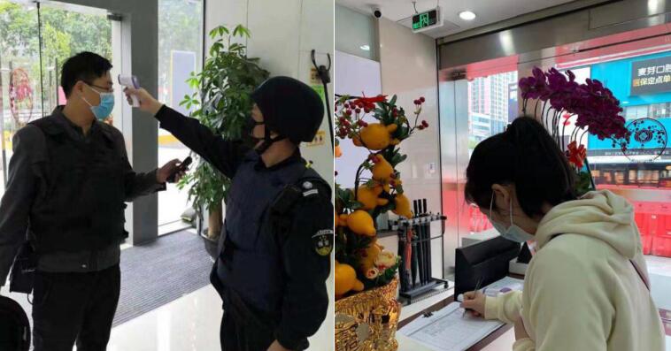 疫情發(fā)生后,寧波銀行深圳分行第一時(shí)間為網(wǎng)點(diǎn)員工準(zhǔn)備了體溫計(jì)、洗手液、酒精、手套、口罩和護(hù)目鏡等防疫物資,督促員工測體溫、勤洗手、戴口罩,做好安全防護(hù)工作。網(wǎng)點(diǎn)做好到行客戶體溫檢測和基本情況登記工作,引導(dǎo)客戶減少聚集,快速辦理業(yè)務(wù)。