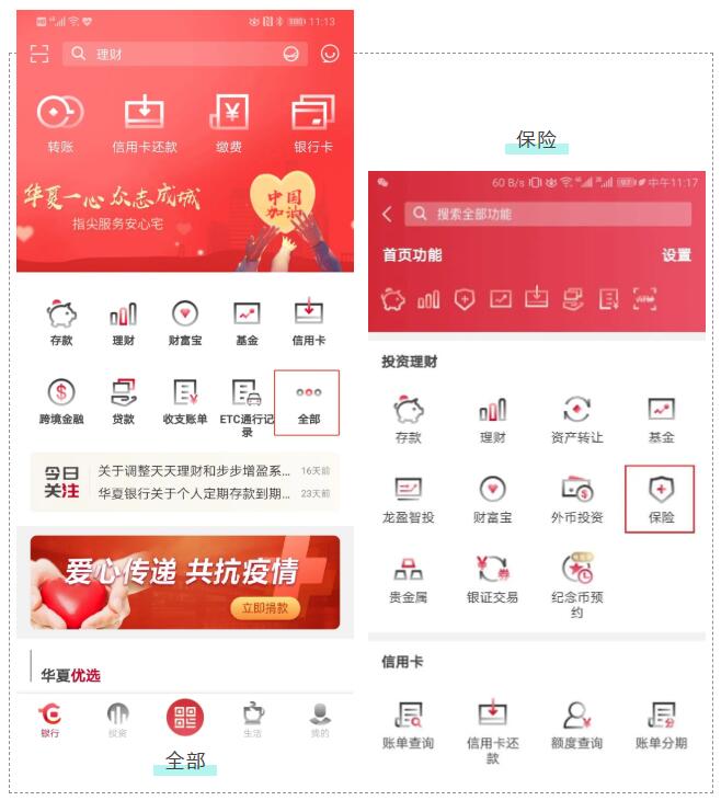 溫馨提示:如果您尚未對(duì)您及您的家庭做保險(xiǎn)配置,在疫情時(shí)期可以通過(guò)華夏銀行手機(jī)銀行APP足不出戶(hù)配齊保險(xiǎn)保障。您只需要打開(kāi)華夏銀行手機(jī)銀行,在首頁(yè)通過(guò)“全部”菜單,進(jìn)入“投資理財(cái)”板塊,點(diǎn)擊“保險(xiǎn)”即可進(jìn)入保險(xiǎn)板塊,按照產(chǎn)品類(lèi)型、場(chǎng)景選擇您需要的產(chǎn)品進(jìn)行購(gòu)買(mǎi)。