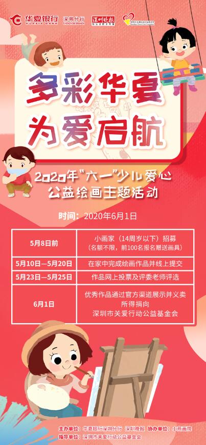 據(jù)悉,今年是華夏銀行深圳分行連續(xù)第三年在“六一”兒童節(jié)當(dāng)天舉辦公益慈善義賣活動,助力深圳市關(guān)愛行動基金會“燃料行動”。作為活動的發(fā)起方和主辦方,華夏銀行深圳分行旨在通過愛心公益繪畫活動,鼓勵孩子們拿起畫筆繪出童真童趣,向社會傳遞公益正能量,為孩子們樹立助人為樂的意識。尤其是在疫情發(fā)生的特殊時期,以實際行動關(guān)愛關(guān)心困境兒童。
